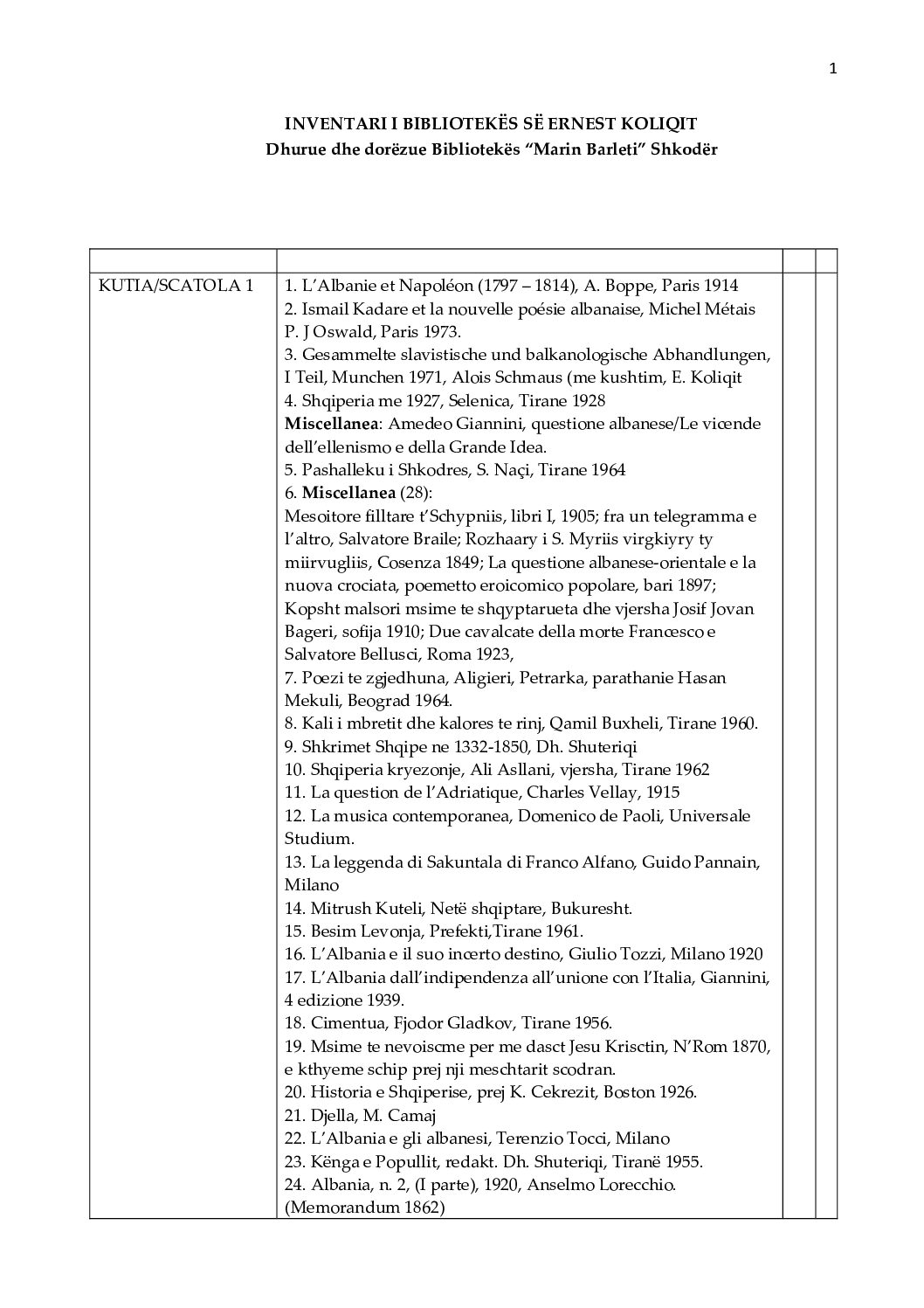 It is possible to view a detailed list of the books from Ernest Koliqi’s library just clicking on the document: